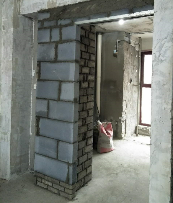 砌筑寬度≥120mm ,砌筑長度考慮砌體的穩(wěn)定性而定,同時(shí)必須有嚴(yán)格的加固措施。